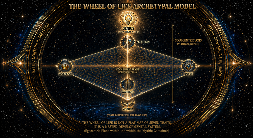 In the Wheel of Life, this is a pivotal move. Once the Lover’s circuit is open, it feeds every other archetype. The Sovereign rules with warmth. The Warrior defends something worth protecting. The Magician’s insights land in the heart, not just the head.